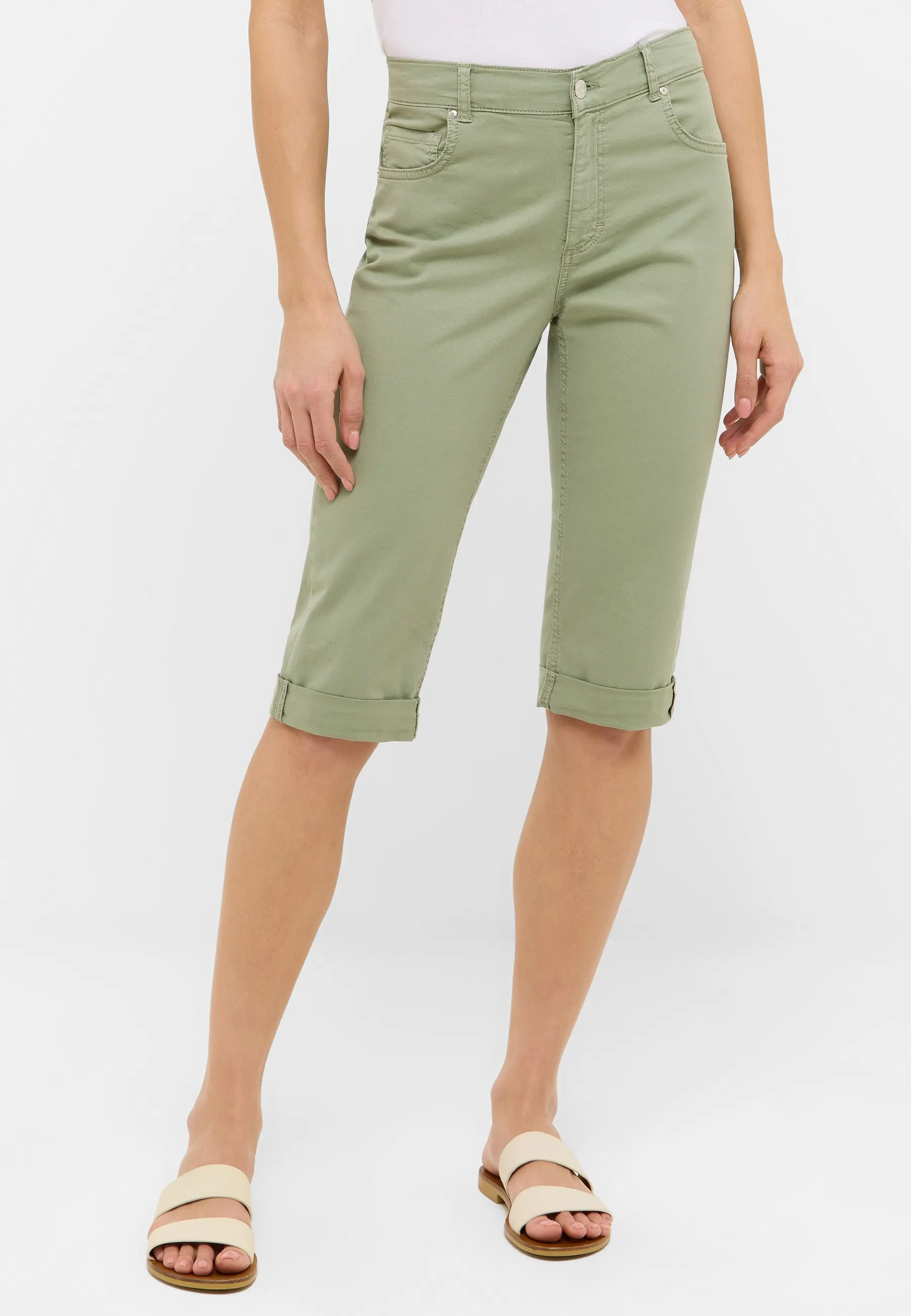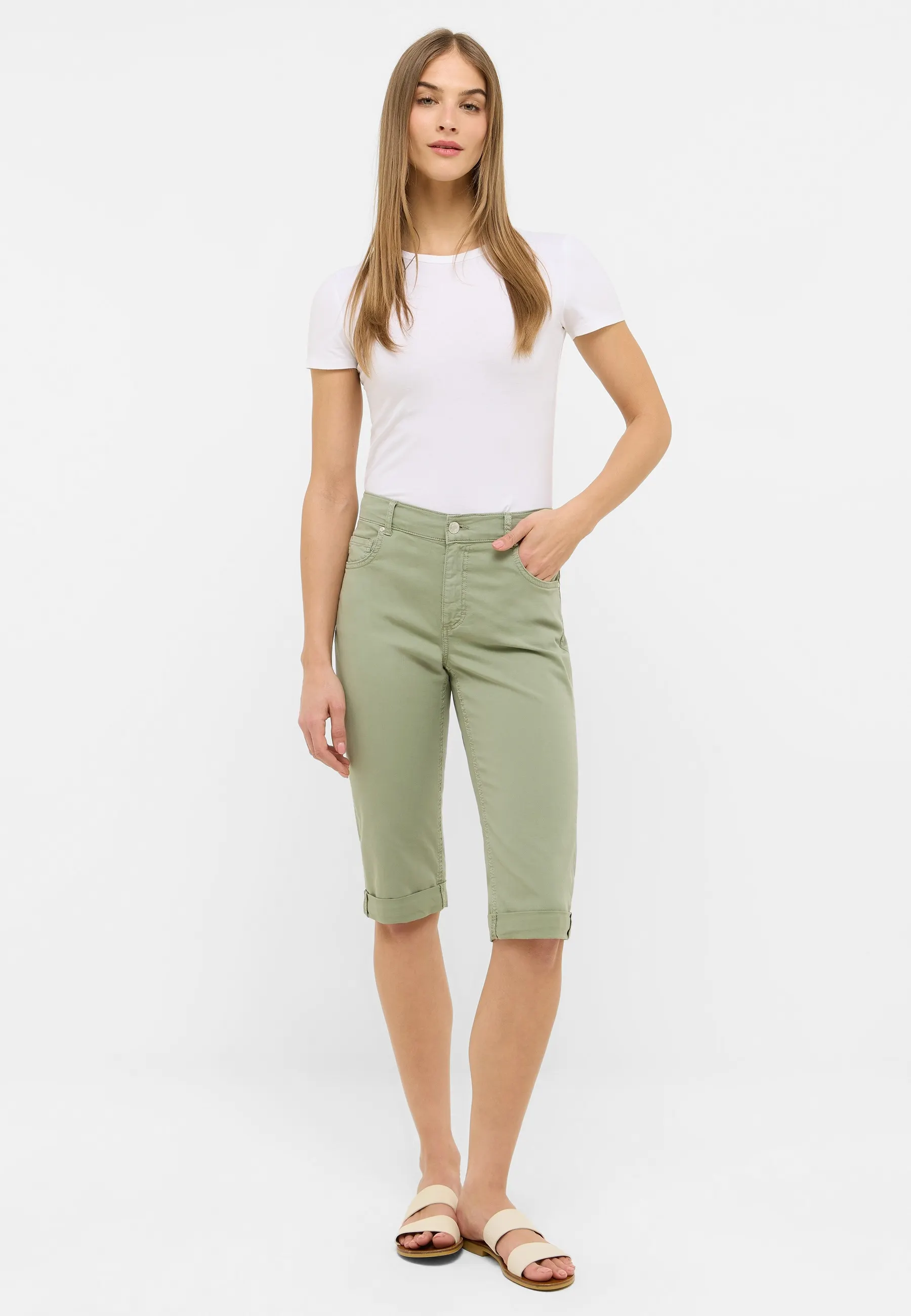 Entdecke unsere neue Capri TU Hose mit einem schmeichelnden Slim Fit und einem lässigen 3/4-Bein aus leichtem Summer Cotton. Die hautfreundliche Baumwollmischung sorgt für ein angenehmes Tragegefühl, während das unifarbene Design vielseitige Kombinationsmöglichkeiten bietet.