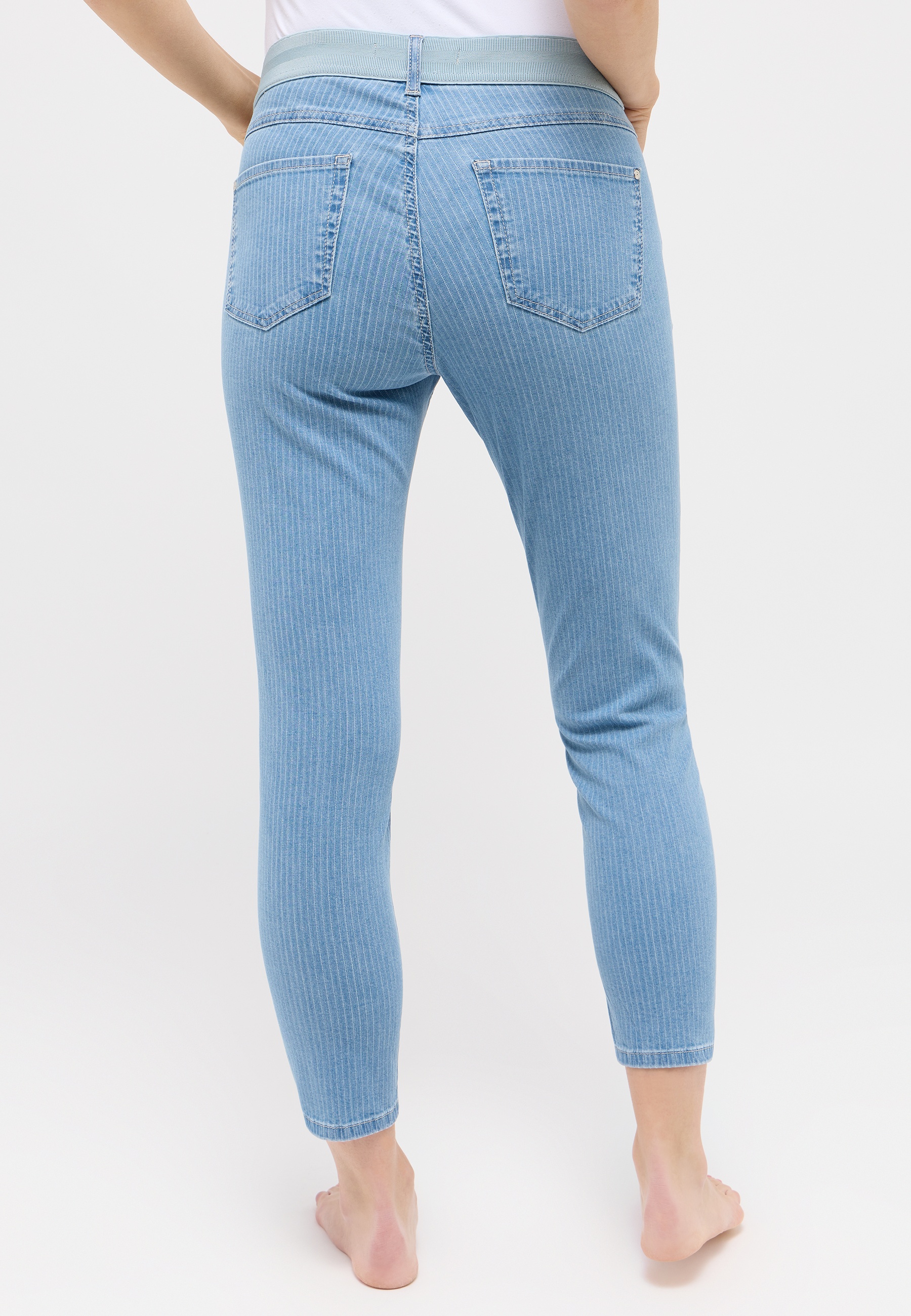 Die Ornella Sporty im Slim Fit mit schmalem 7/8 Bein bringt sportlichen Charme in deinen Look. Das Streifenmuster und der Dehnbund sorgen für Komfort und Stil, während der softe Denim eine tolle Passform garantiert. Perfekt für einen coolen, trendigen Auftritt!