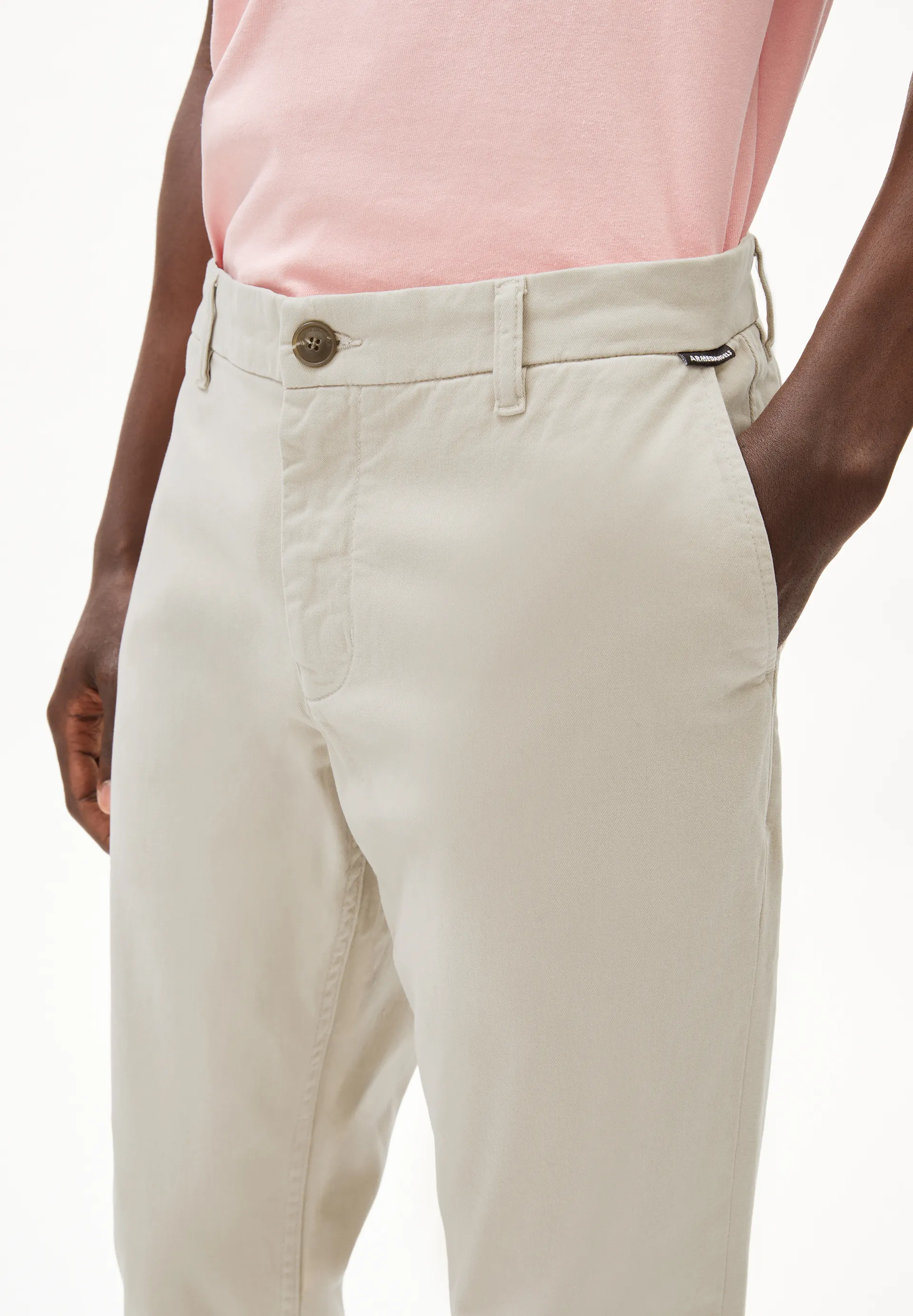 The AASTER chinos are made from heavy organic cotton with a small amount of stretch. The clean, timeless design is complemented by side pockets. The structured quality provides comfort and natural freedom of movement.