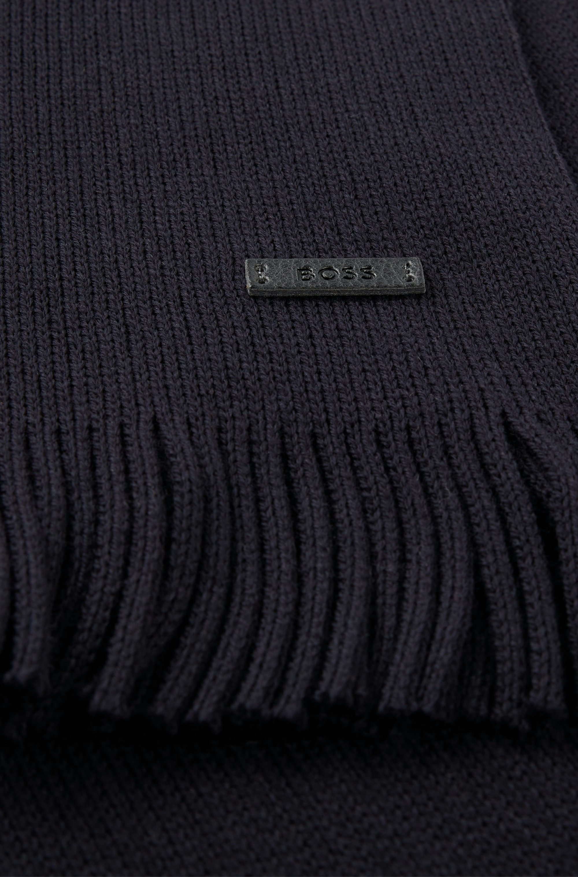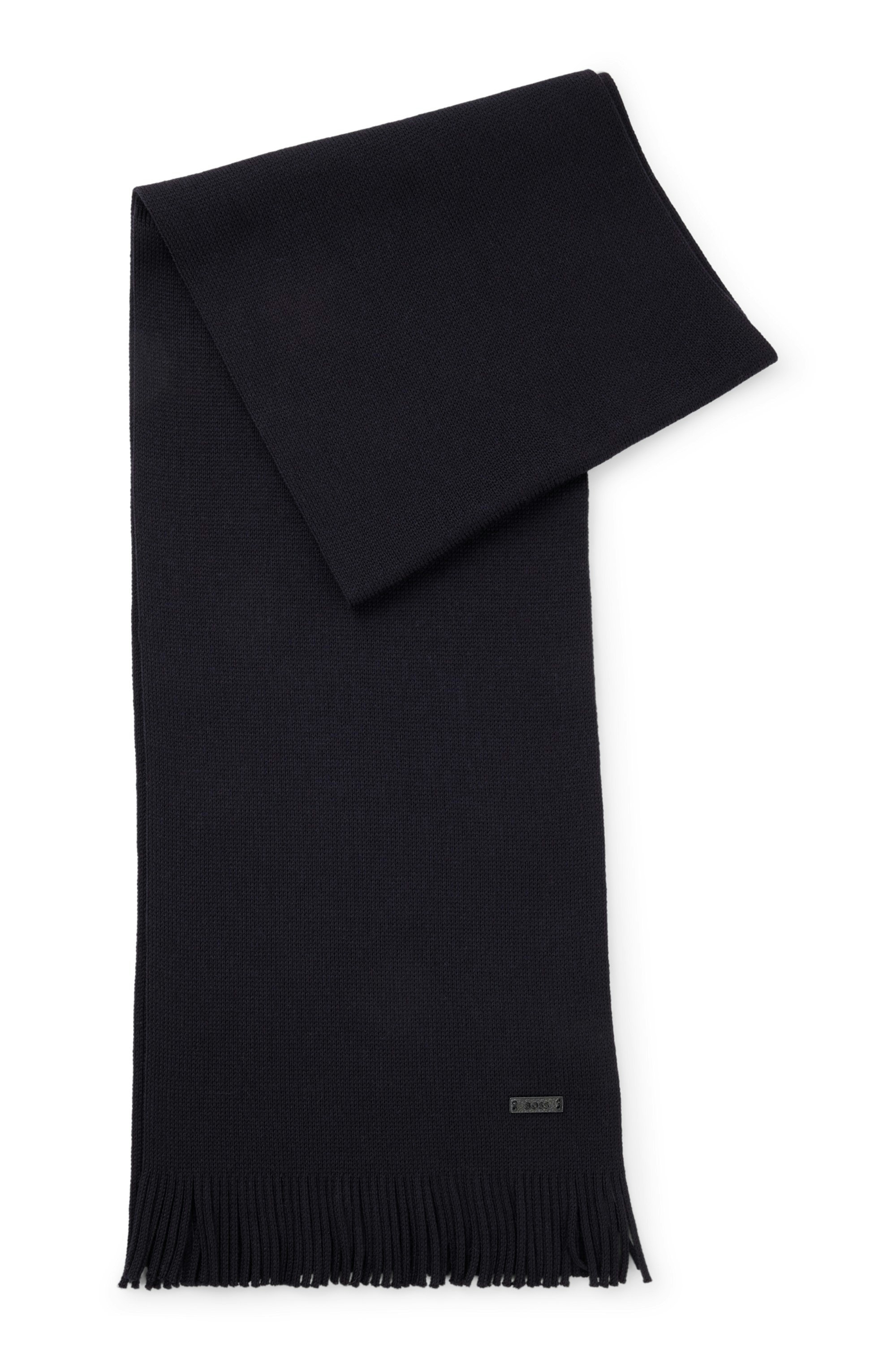 Vielseitig kombinierbarer BOSS Schal, der mit Raschel-Struktur gestrickt wurde. Fransen und eine Logo-Applikation aus Kunstleder runden das Accessoire ab. Dieses Produkt wird mit nachhaltiger gewonnener Wolle gefertigt. Nachhaltiger gewonnen bedeutet für uns mulesingfrei unter Einhaltung der Fünf Freiheiten für das Tierwohl.