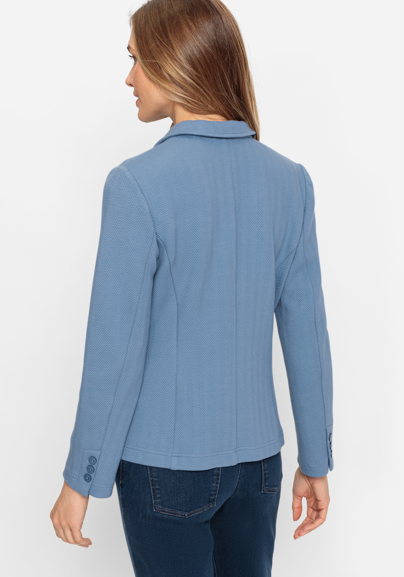 Entdecken Sie diesen eleganten Blazer mit zwei Verschlussknöpfen für einen zeitlosen Look. Die langen, nicht krempelbaren Ärmel und die Fake-Knöpfe am Ärmelsaum verleihen ihm eine raffinierte Note. Die aufgesetzten Taschen bieten sowohl Stil als auch Funktionalität. Hergestellt aus einer hochwertigen Mischung aus Baumwolle, Polyester und Elastan bietet dieser Blazer nicht nur Komfort, sondern auch eine optimale Passform. Ein vielseitiges Stück für Ihre Garderobe, das sich mühelos zu verschiedenen Outfits kombinieren lässt!