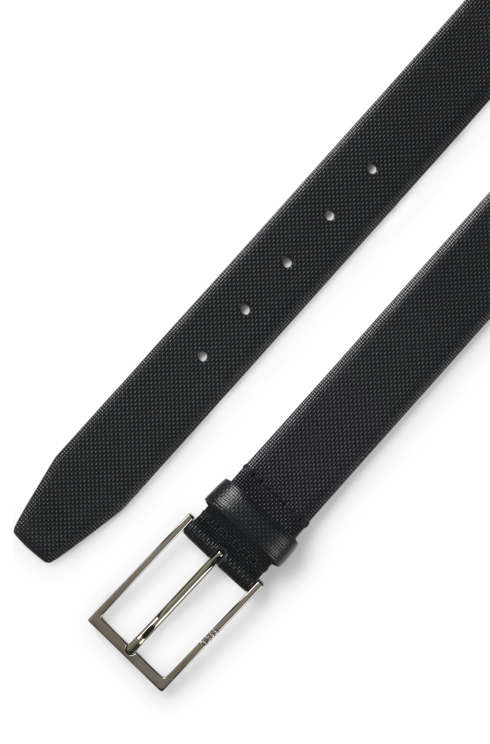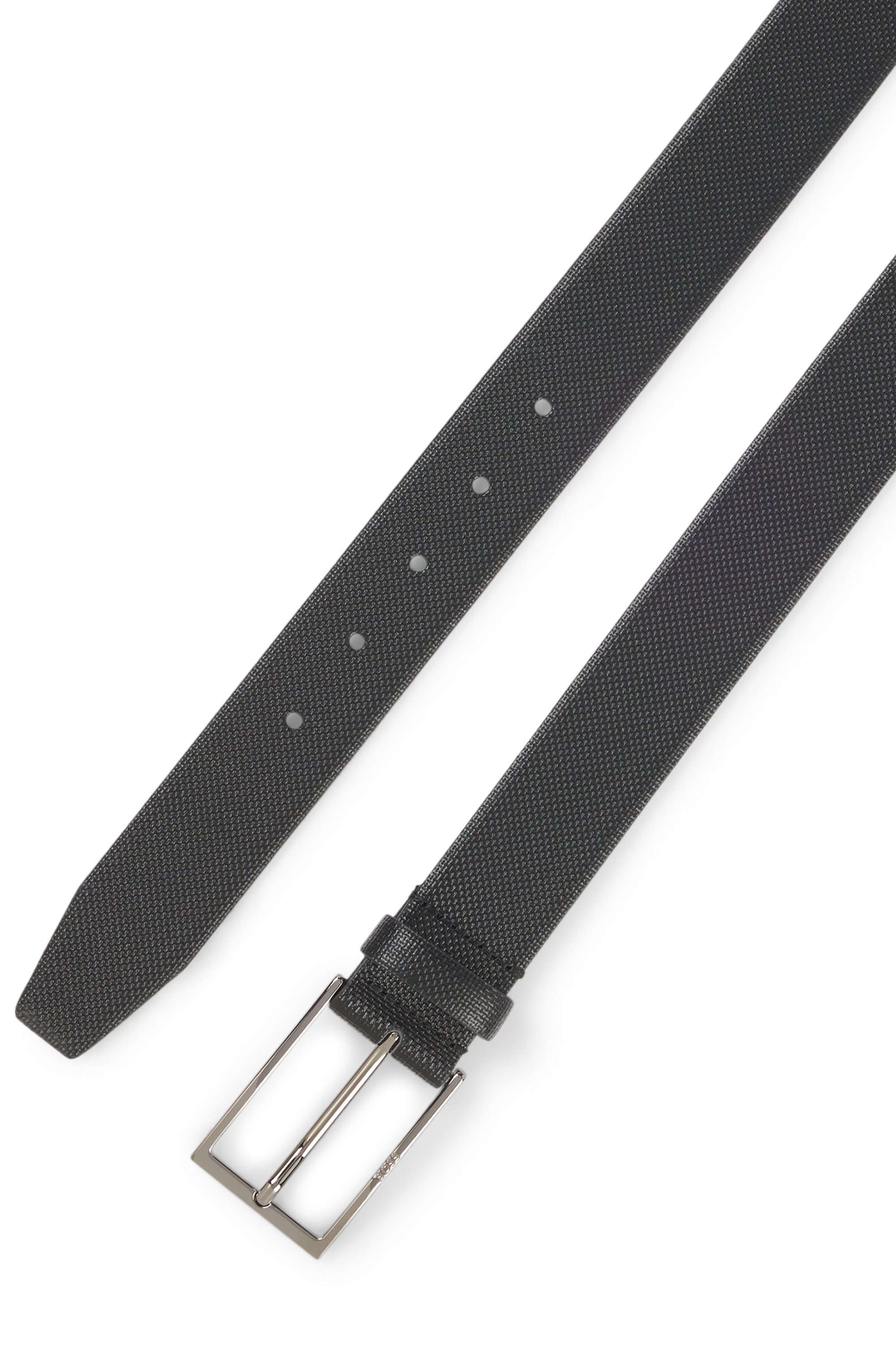 Der 3,5 Zentimeter breite BOSS Gürtel aus besonders feinem italienischem Leder mit Print-Struktur ist mit einer silberfarbenen Dornschließe versehen, die für formelle Eleganz sorgt. Für eine optimale Passform sollte der Gürtel eine Größe größer als dein Taillenumfang sein. Dieses Produkt enthält mindestens 60 % bessere Rohstoffe. Bei der Herstellung unserer Produkte sind wir immer auf der Suche nach nachhaltigeren Lösungen. Mindestens 60 % des Leders in diesem Produkt stammen aus zertifizierten Gerbereien.