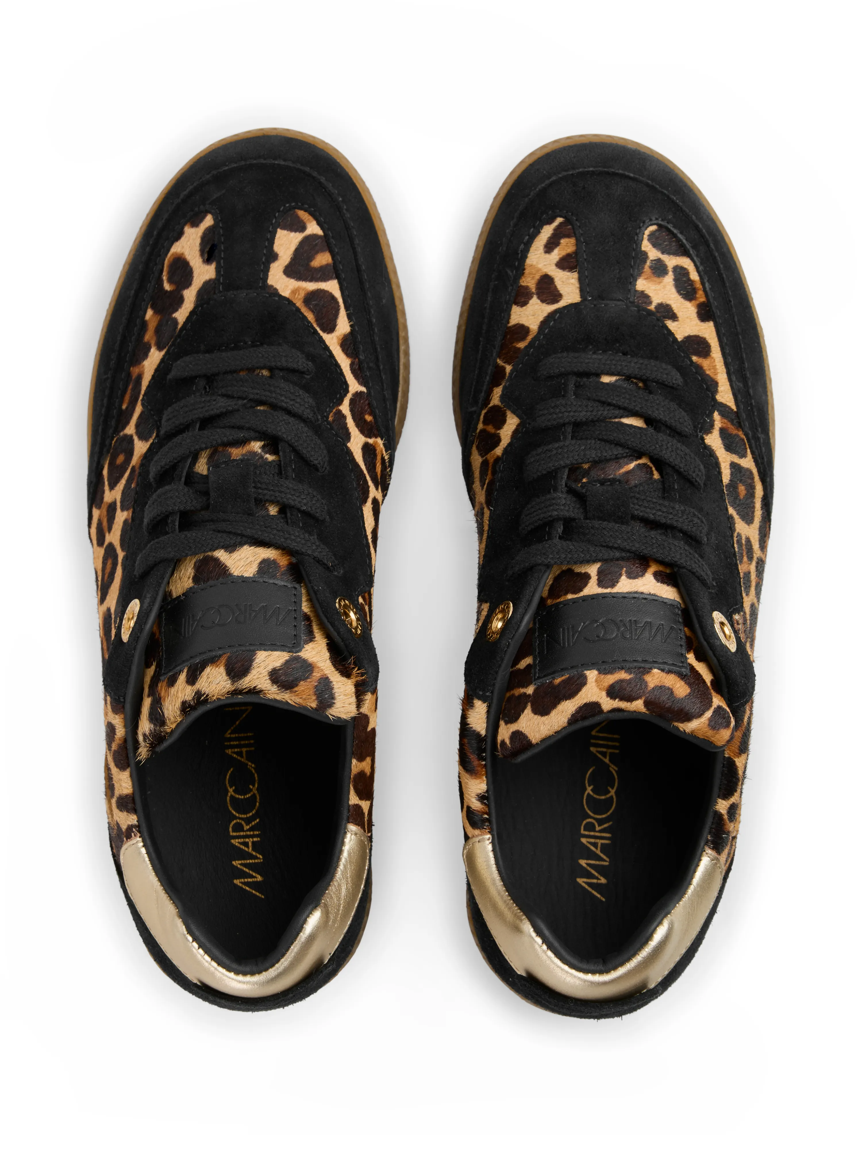 Leder-Sneaker mit Leo-Felloptik