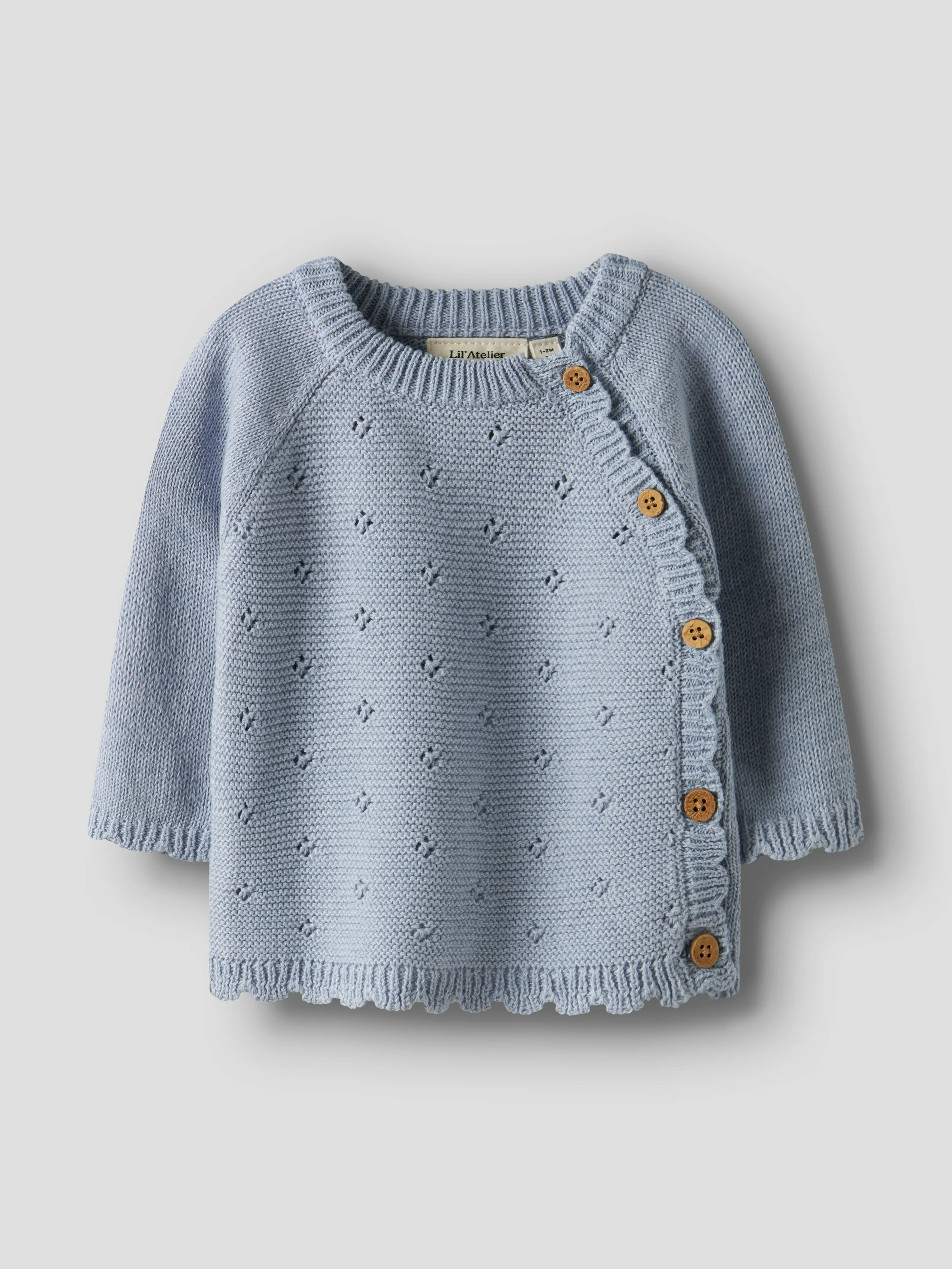 Kreiere mit hochwertigen Alltagsstyles das perfekte Outfit für dein Kind, das nicht nur bequem, sondern auch super trendy ist. Charakteristisch für Strick sind Lochmuster sowie das weiche und angenehme Tragegefühl.- Produktart: Cardigan- Verschluss: Knopfverschluss- Ausschnitt: Rundhalsausschnitt- Ärmel: Lange Ärmel- Weitere Details: Muschelsaum- Stoff: Strick- Passform: Regular Fit- Achtung: WARNHINWEIS! Von Feuer fernhalten