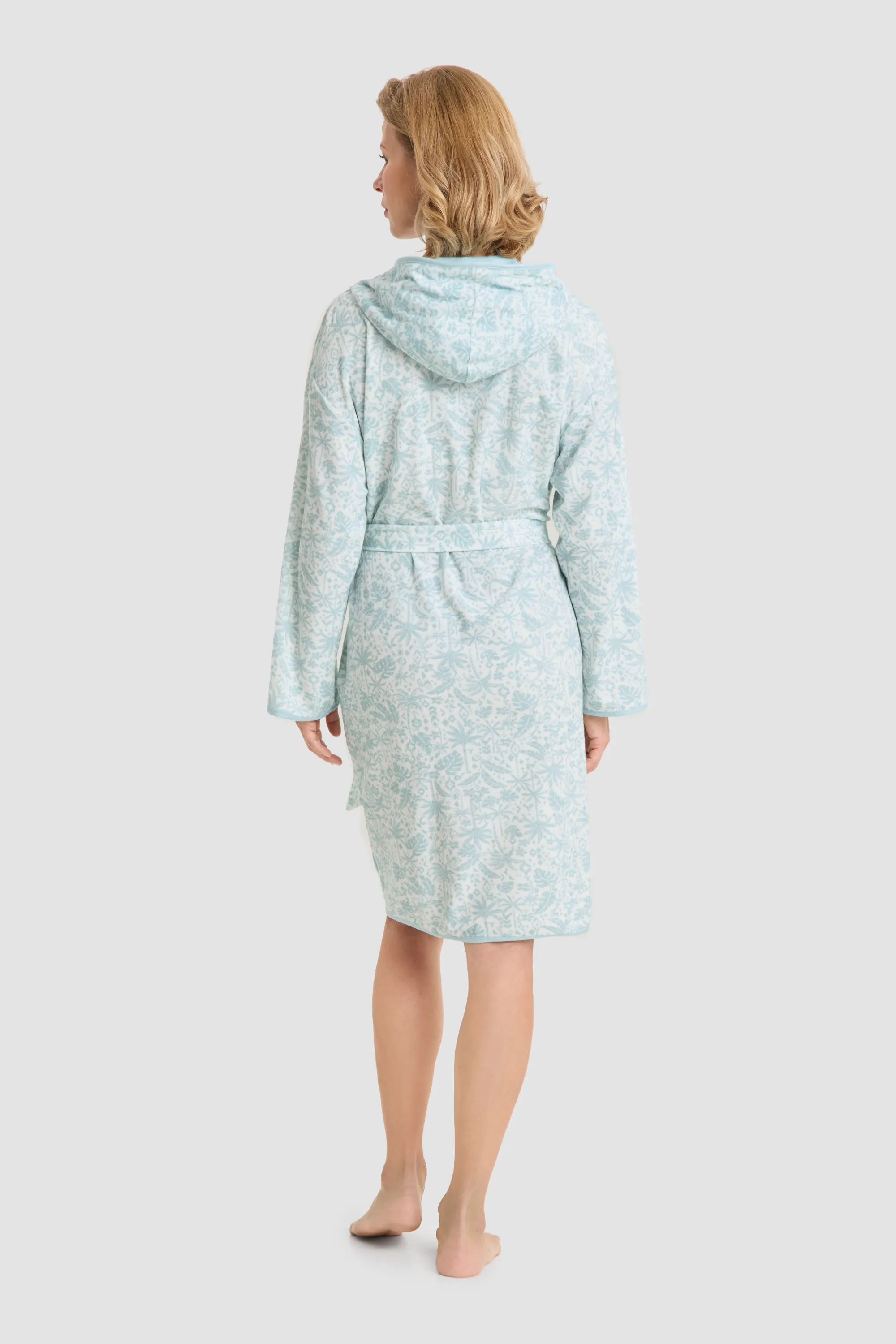 Robe,1/1 sleeve, wrap around, pockets, hooded