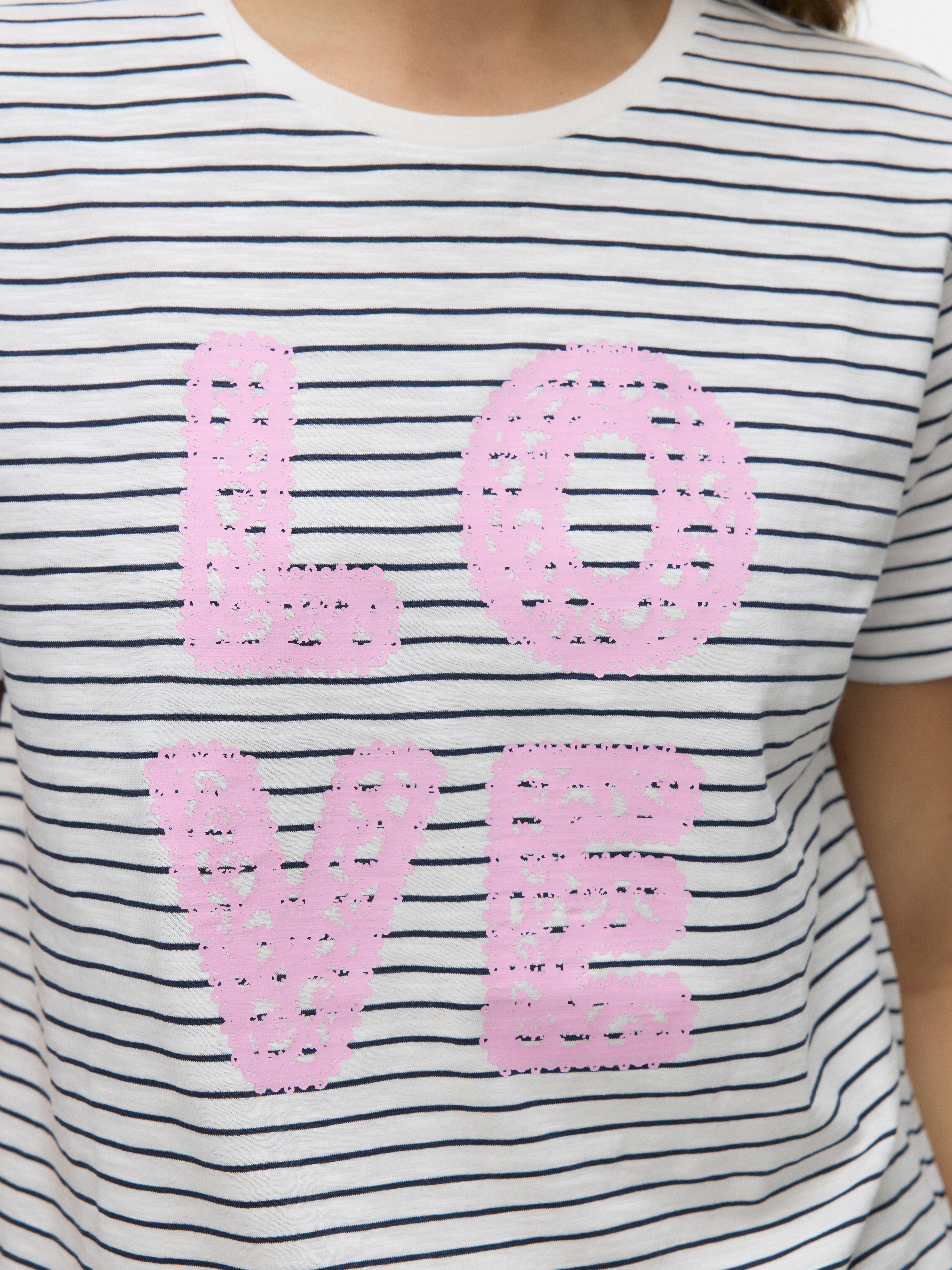 Im Zweifelsfall ein T-Shirt tragen! Mit einem T-Shirt können Sie nie etwas falsch machen - eine perfekte Wahl für einen coolen und zeitlosen Look. Tragen Sie dieses T-Shirt zu einer schönen Boyfriend-Jeans und fügen Sie ein Paar klobige Sneaker für einen urbanen City-Look hinzu.